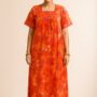 Orange Tie & Tie with wax Flower printed more soft Nighty