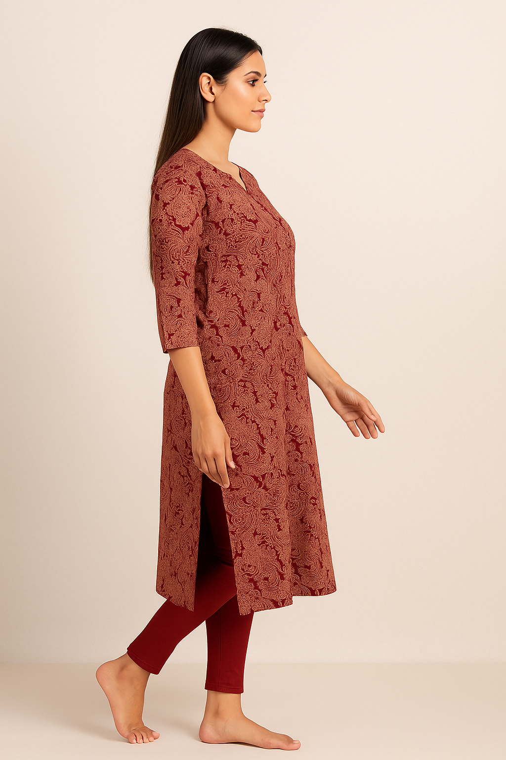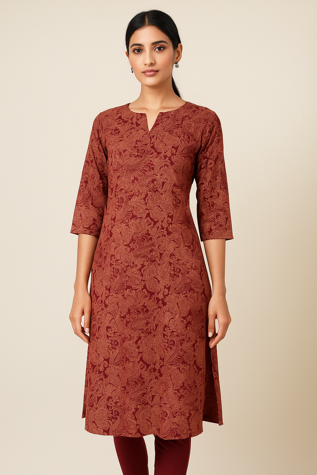 • Burgundy with Paisley Printed